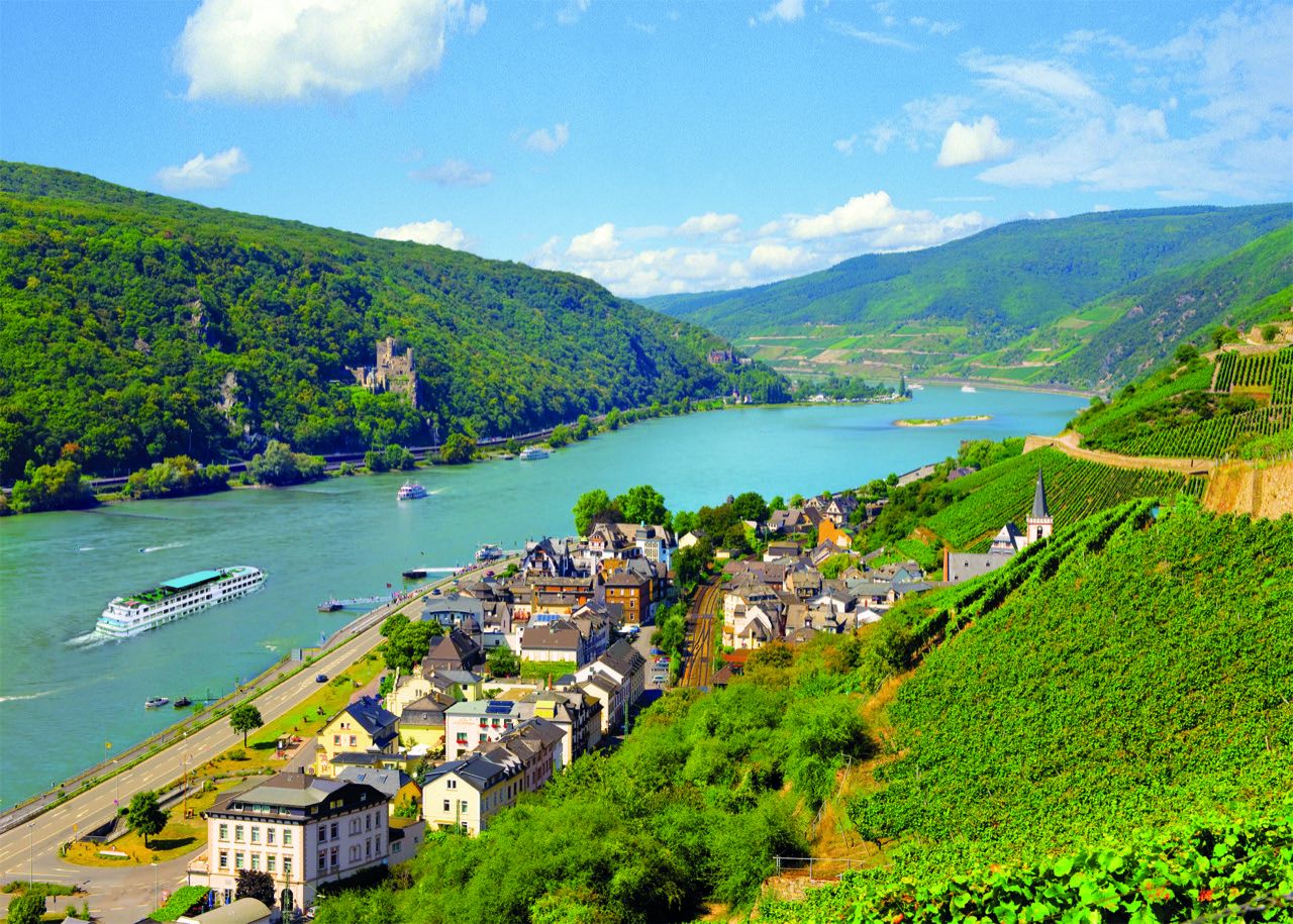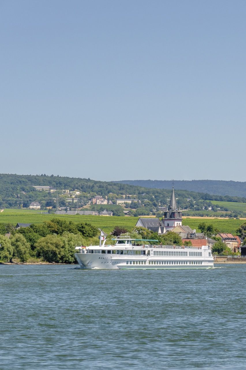 Navigation matinale dans la vallée du Rhin romantique, décor enchanteur des poètes et compositeurs.